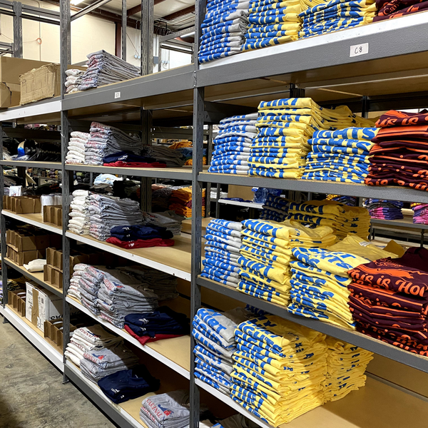 Attached to our production facility is our 10,000-square foot fulfillment center that can handle all your fulfillment needs. From inventory maintenance to ecommerce store support, customer service, and fulfillment, this turnkey solution offers simple and competitive pricing, reporting, and more. We also store and dropship tour merchandise.