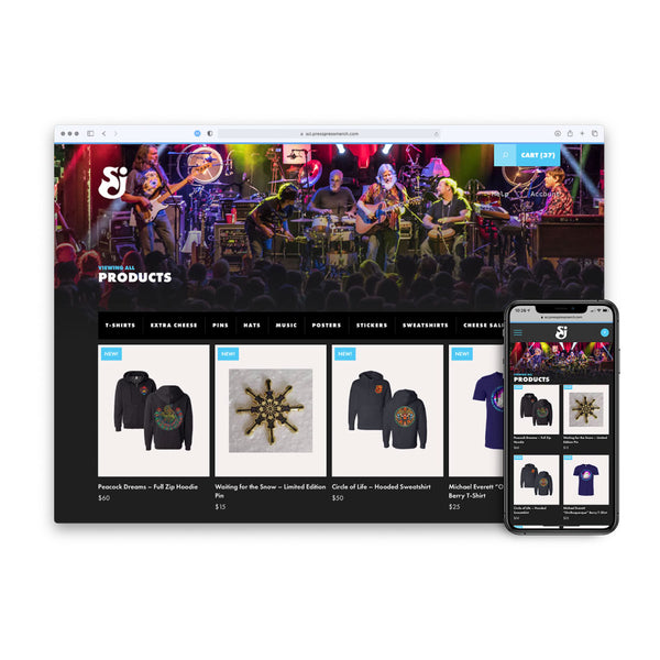 If you're an artist or music festival looking for a one-stop merch solution, look no further. Press Press Merch handles graphic design, merchandise production, e-commerce, order fulfillment, tour merchandise logistics, and more.